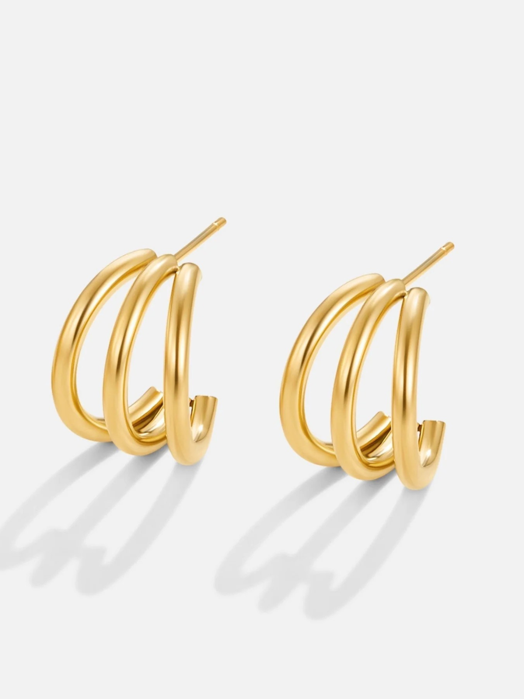Découvrez nos boucles d'oreilles plaquées or 18 carats : entièrement résistantes à l'eau, hypoallergéniques et grand teint. Conçues pour être portées au quotidien, sans que la couleur ne s'estompe ou ne s'altère !