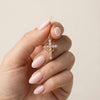 Symbole de dévotion et de force intérieure, ce pendentif en forme de croix et de couronne plaqué or est orné de pierres de zircon lumineuses qui captent la lumière à chaque mouvement. Conçu pour refléter à la fois la foi et l'élégance, il vous rappelle discrètement de garder vos convictions près de vous, avec grâce, confiance et détermination.