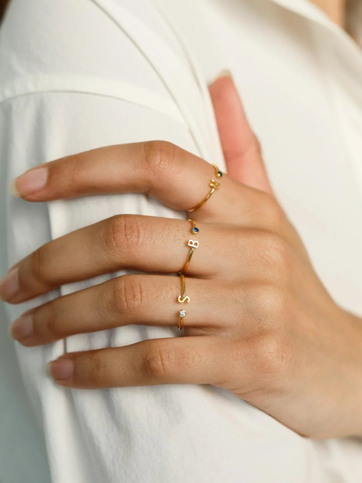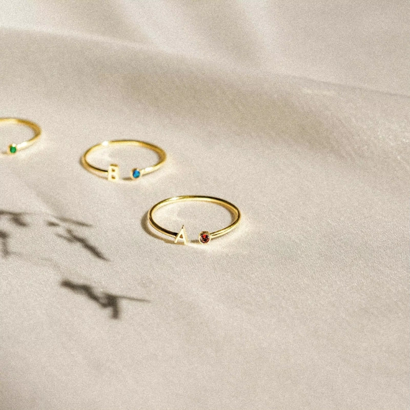 Cette bague vous permet d'arborer une initiale spéciale ainsi qu'une pierre de naissance, créant ainsi un bijou qui raconte votre histoire : la vôtre, celle d'un être cher ou encore un souvenir que vous souhaitez garder près de vous.